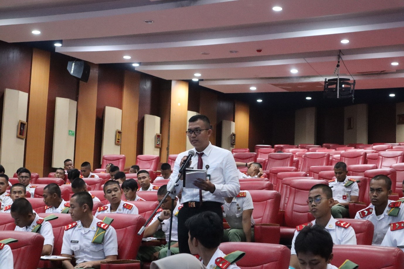 Narasumber pertama, Letda Tum Abdul Hadi Adriansyah, S.T., Ps. Dantonma Sathanlan Lanud D. Dumatubun sekaligus alumni Prodi Teknik Sipil FTTP Unhan RI, menekankan pentingnya integrasi profil lulusan sebagai Perwira TNI sekaligus Engineer. Ia menyoroti keunggulan pendekatan OBE yang menempatkan kadet mahasiswa sebagai pembelajar aktif melalui proyek, penguatan soft skills, dan keterkaitan langsung dengan kebutuhan profesional. Namun, ia juga mengingatkan adanya tantangan berupa keterbatasan akses pada proyek pertahanan yang bersifat rahasia serta perlunya penyesuaian kurikulum terkait metode konstruksi dan perawatan bangunan militer.
