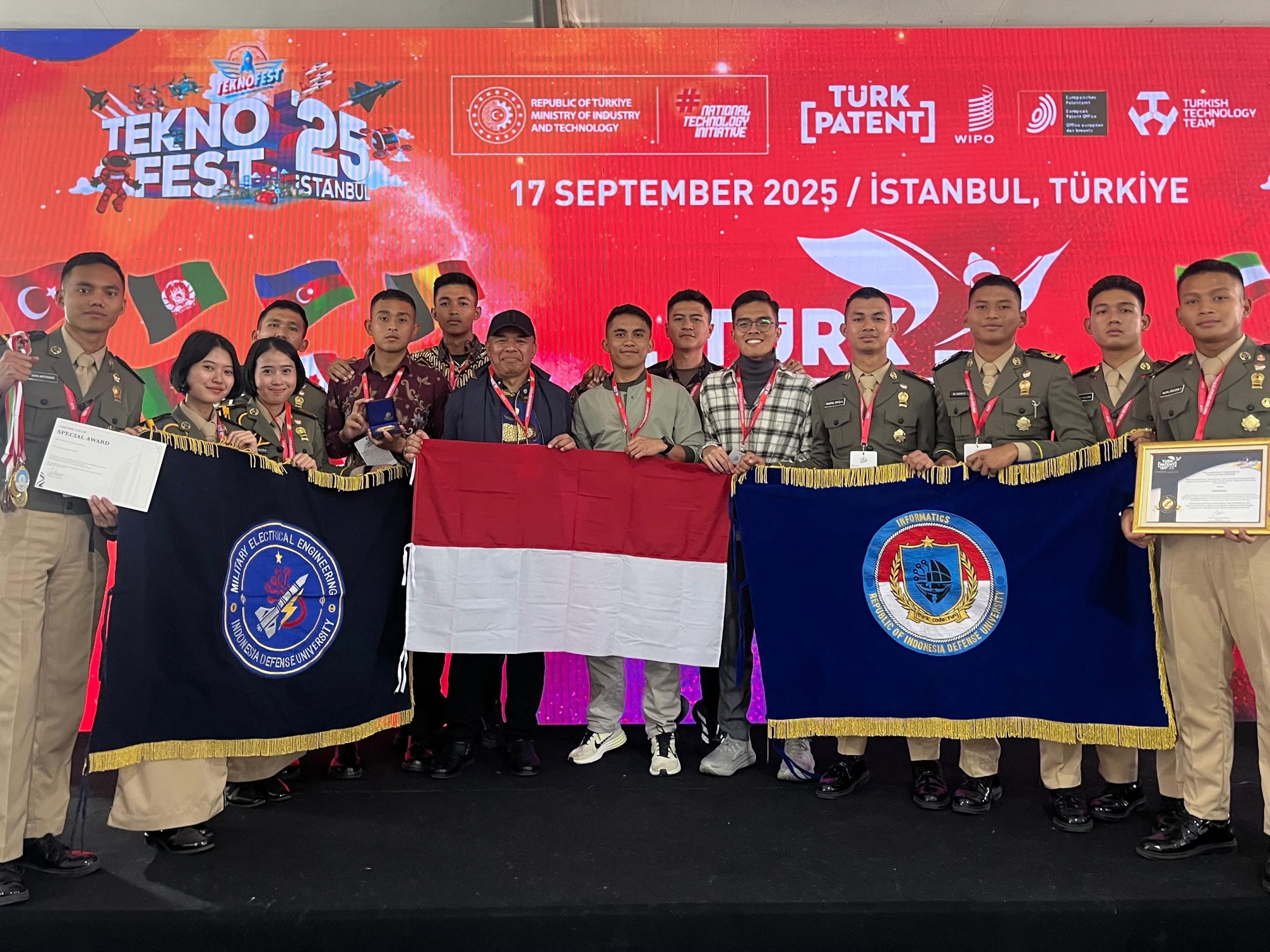 Istanbul (21/09) — Delegasi Universitas Pertahanan Republik Indonesia (Unhan RI) kembali menorehkan prestasi gemilang di kancah inovasi dunia dengan meraih World Intellectual Property Organization (WIPO) Best International Award, Gold Medal Award, dan beberapa Special Awards dalam ajang bergengsi International Science and Invention Fair (ISIF) 2025 yang berlangsung di Istanbul, Turki pada 19–21 September 2025. Kompetisi ini diselenggarakan oleh Turkish Patent and Trademark Office bersama WIPO dan diikuti Para Inovator dari berbagai negara.